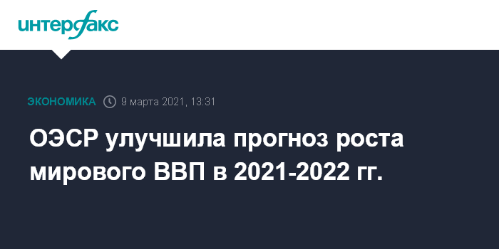 ОЭСР улучшила прогноз роста мирового ВВП в 2021-2022 гг.