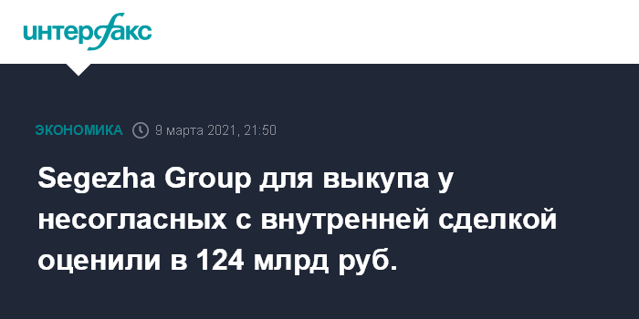 Segezha Group для выкупа у несогласных с внутренней сделкой оценили в 124 млрд руб.