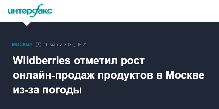 Москва. 10 марта. INTERFAX.RU - Крупнейший в России онлайн-ритейлер Wildberries отметил значительный рост продаж продуктов питания на своей площадке в феврале в Московском регионе: на 42% к январю и на 305% к февралю 2020 года.
