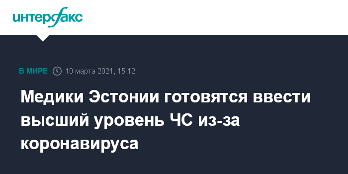 Москва. 10 марта. INTERFAX.RU - Кризисный штаб Департамента здоровья Эстонии ведет подготовку к объявлению в медицинской системе третьего, самого высокого уровня чрезвычайной ситуации.