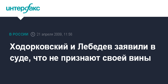 Москва. 21 апреля. INTERFAX.RU - Экс-глава НК "ЮКОС" Михаил Ходорковский и бывший глава МФО "МЕНАТЕП" Платон Лебедев заявили в Хамовническом суде Москвы, что не признают своей вины по предъявленному им обвинению.