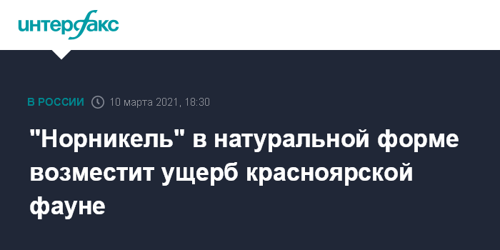 "Норникель" в натуральной форме возместит ущерб красноярской фауне