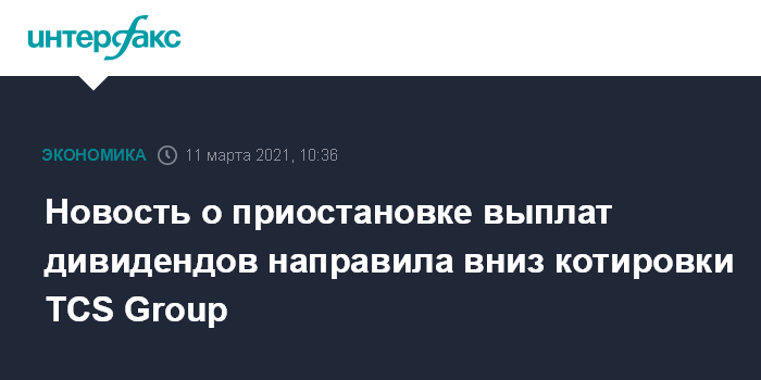 TCS Group также сообщила, что временно остановит выплату дивидендов до конца 2021 года, поскольку продолжает изучать возможности для органического и неорганического развития бизнеса, говорится в сообщении группы. "Руководство уверено, что если мы сейчас инвестируем капитал в дополнительный рост, то это станет лучшей гарантией устойчивости и прибыльности нашего бизнеса в будущем. Об этом мы подробно поговорим на дне стратегии, который состоится 7 апреля 2021 года", - заявили в TCS.
