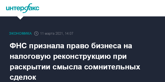 ФНС признала право бизнеса на налоговую реконструкцию при раскрытии смысла сомнительных сделок