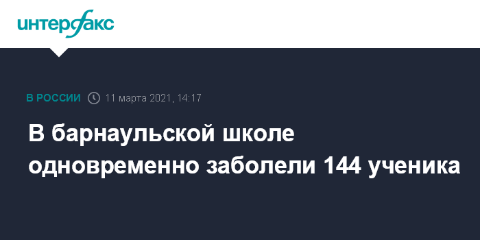 Москва. 11 марта. INTERFAX.RU - В Барнауле в школу №128 за последние несколько дней на занятия не пришли 144 ребенка из 1738, сообщили в пресс-службе мэрии города. Заболевшие жаловались на расстройство желудка, температуру, рвоту. Ситуацию расследует специальная комиссия.