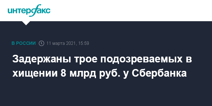Задержаны трое подозреваемых в хищении 8 млрд руб. у Сбербанка