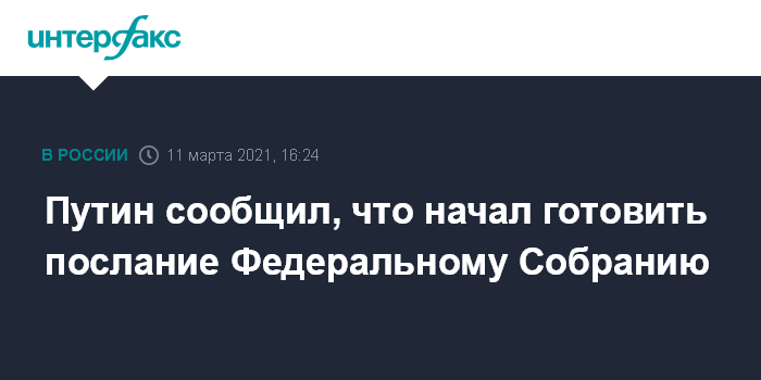 Москва. 11 марта. INTERFAX.RU - Подготовка к ежегодному посланию Федеральному Собранию началась, заявил президент РФ Владимир Путин.