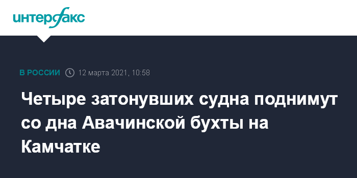 Москва. 12 марта. INTERFAX.RU - На Камчатке в ближайшие дни приступят к подъему затонувших в Авачинской бухте судов. Как только позволят погодные условия, первой будут поднимать шхуну "Ронд", ушедшую на дно в 2018 году. Об этом сообщается в пятницу на сайте правительства Камчатского края.