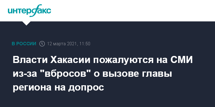 Власти Хакасии пожалуются на СМИ из-за "вбросов" о вызове главы региона на допрос