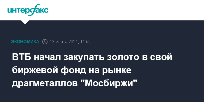 ВТБ начал закупать золото в свой биржевой фонд на рынке драгметаллов "Мосбиржи"