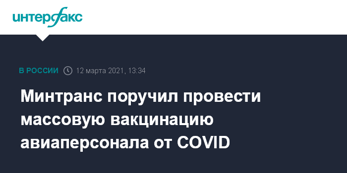 Москва. 12 марта. INTERFAX.RU - Минтранс РФ поручил Росавиации организовать вместе с авиапредприятиями массовую вакцинацию работников авиатранспорта от COVID-19.