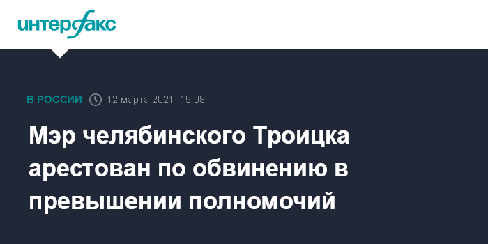 Мэр челябинского Троицка арестован по обвинению в превышении полномочий