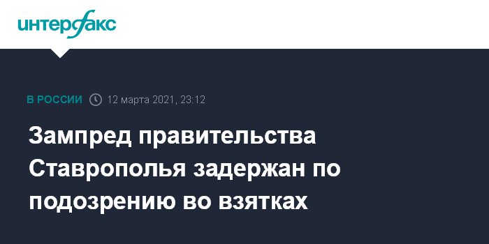 Зампред правительства Ставрополья задержан по подозрению во взятках