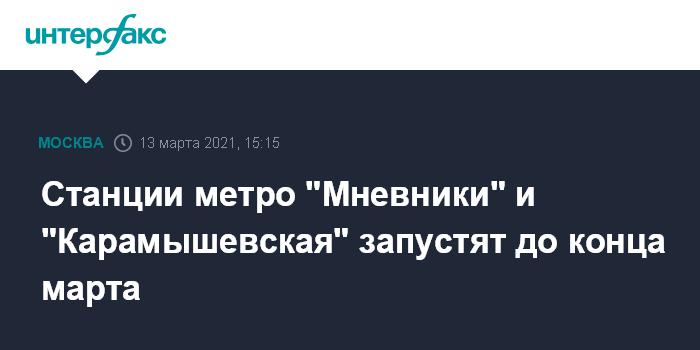 Станции метро "Мневники" и "Карамышевская" запустят до конца марта