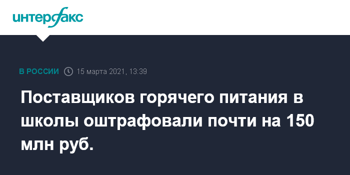 Поставщиков горячего питания в школы оштрафовали почти на 150 млн руб.