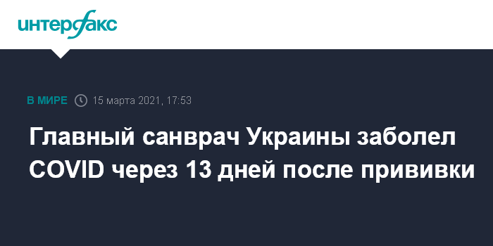 Главный санврач Украины заболел COVID через 13 дней после прививки