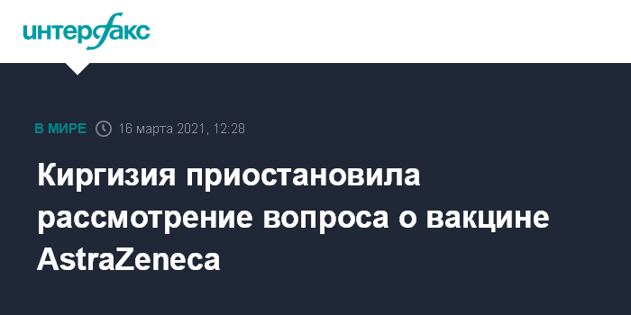 Москва. 16 марта. INTERFAX.RU - Киргизия остановила рассмотрение вопроса о поставке в страну вакцины от коронавируса AstraZeneca в рамках программы COVAX, сообщил "Интерфаксу" во вторник министр здравоохранения страны Алымкадыр Бейшеналиев.