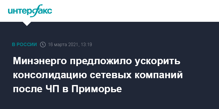 Минэнерго предложило ускорить консолидацию сетевых компаний после ЧП в Приморье