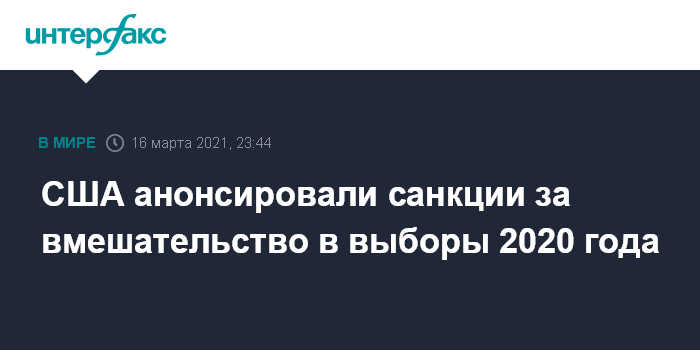 США анонсировали санкции за вмешательство в выборы 2020 года