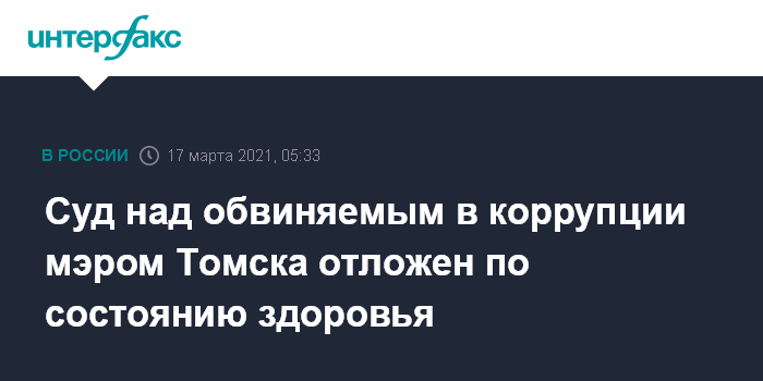 Суд над обвиняемым в коррупции мэром Томска отложен по состоянию здоровья