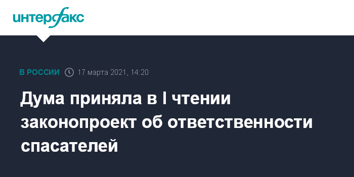 Москва. 17 марта. INTERFAX.RU - Государственная Дума приняла в первом чтении правительственный законопроект, по которому спасатели и их руководители не несут ответственности за гибель своих подчиненных и спасаемых людей в условиях оправданного риска или в состоянии крайней необходимости.