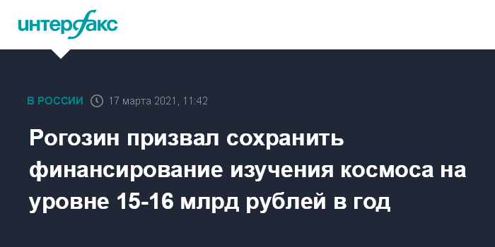 Москва. 17 марта. INTERFAX.RU - На научные космические программы нужно от 15 до 16 млрд рублей в год, заявил гендиректор "Роскосмоса" Дмитрий Рогозин.