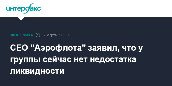 CEO "Аэрофлота" заявил, что у группы сейчас нет недостатка ликвидности