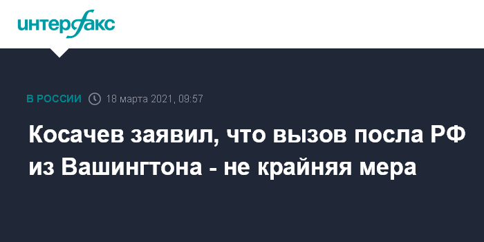 Москва. 18 марта. INTERFAX.RU - Приглашение посла РФ из Вашингтона для консультаций будет не последним шагом Москвы, если не последует разъяснений и извинений с американской стороны за неприемлемые слова президента США Джо Байдена о президенте РФ Владимире Путине, полагает вице-спикер Совета Федерации Константин Косачев.