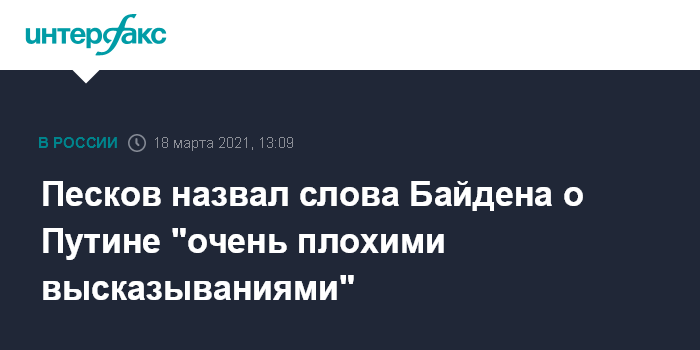 В ходе общения с журналистами в четверг пресс-секретаря президента РФ Дмитрий Пескова спросили, как в Кремле восприняли это интервью, в котором Байден "сделал ряд высказываний" в отношении президента РФ. Также был задан вопрос, "не оскорбили ли лично Путина" эти "высказывания".