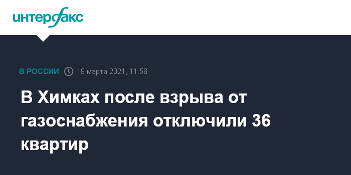 Москва. 19 марта. INTERFAX.RU - В Химках, в жилом девятиэтажном кирпичном доме после взрыва перекрыли подачу газа в 36 квартир, сообщило Минэнерго Московской области. На место направлена бригада "Мособлгаза", которая выяснит причины взрыва.