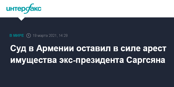 Москва. 19 марта. INTERFAX.RU - Суд общей юрисдикции Еревана отказался снять арест с имущества бывшего президента Армении Сержа Саргсяна.