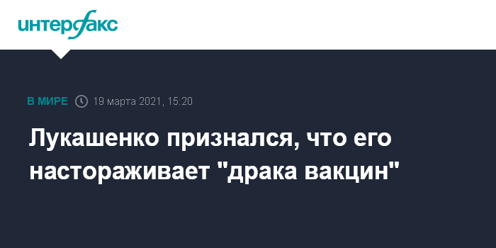 Москва. 19 марта. INTERFAX.RU - Президент Белоруссии Александр Лукашенко отмечает высокую конкуренцию на рынке среди производителей вакцин от COVID-19.
