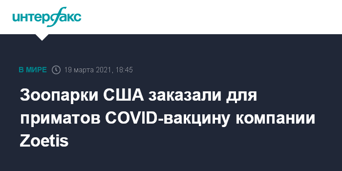 Ранее ветеринарная компания Zoetis получила разрешение от министерства сельского хозяйства США на экспериментальную поставку вакцины в зоопарк Сан-Диего. Ранее сообщалось, что четыре орангутанга и пять бонобо получили по две дозы вакцины после того, как у живущих в зоопарке горилл был диагностирован коронавирус.