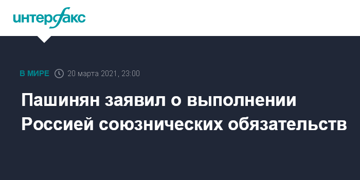 Москва. 20 марта. INTERFAX.RU - Россия во время войны в Нагорном Карабахе полностью выполняла свои союзнические обязательства перед Арменией, заявил премьер-министр республики Никол Пашинян.