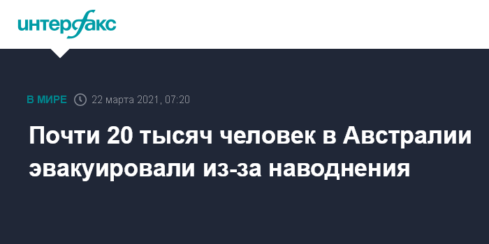 Москва. 22 марта. INTERFAX.RU - Проливные дожди вдоль восточного побережья Австралии привели к сильнейшему за последние 60 лет наводнению в ряде районов, сообщили власти в понедельник.