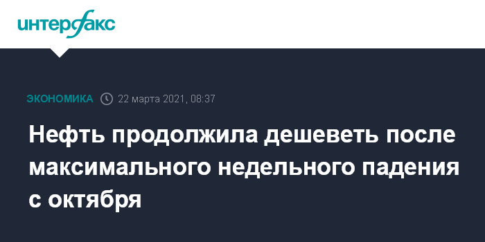 На прошлой неделе Brent подешевела на 6,8%, WTI - на 6,4%. В четверг, 18 марта, нефтяные цены продемонстрировали максимальное в процентном отношении падение с июня: Brent снизилась в цене на 6,9%, WTI - на 7,1%. Это падение создало атмосферу неопределенности на рынке, поскольку инвесторы сомневаются в устойчивости ралли, наблюдавшегося в этом году, отмечает S&P Global Platts.