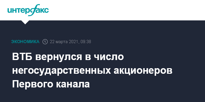 ВТБ вернулся в число негосударственных акционеров Первого канала