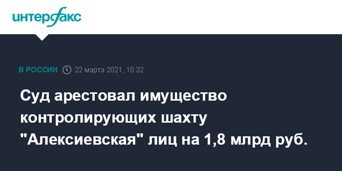 Москва. 22 марта. INTERFAX.RU - Арбитражный суд Кемеровской области удовлетворил заявление ФНС о введении обеспечительных мер и арестовал имущество пяти компаний и 14 физлиц, контролирующих шахту "Алексиевская" (находится в конкурсном производстве, не ведет угледобычу) на сумму 1,755 млрд рублей, говорится в материалах дела.