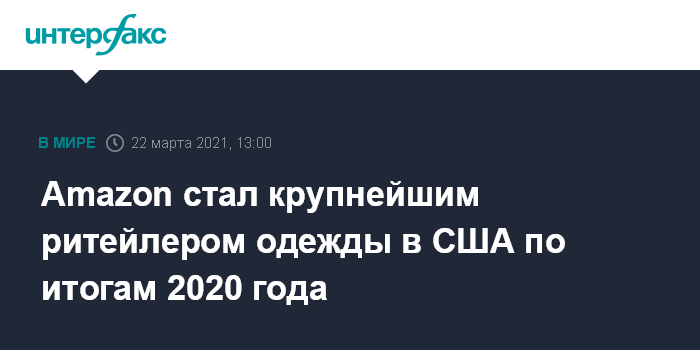 Amazon стал крупнейшим ритейлером одежды в США по итогам 2020 года