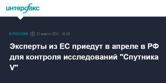 Эксперты из ЕС приедут в апреле в РФ для контроля исследований "Спутника V"