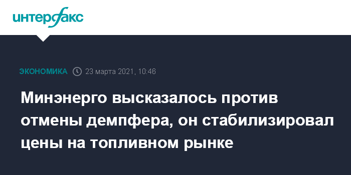 Минэнерго высказалось против отмены демпфера, он стабилизировал цены на топливном рынке