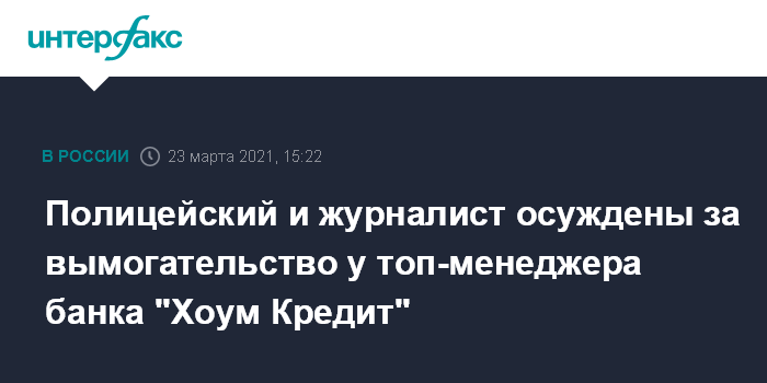 Полицейский и журналист осуждены за вымогательство у топ-менеджера банка "Хоум Кредит"