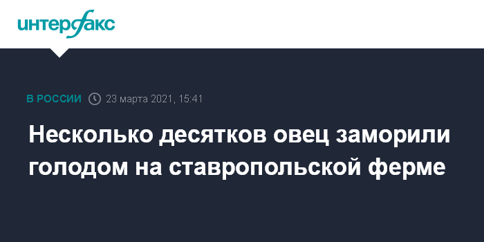 Москва. 23 марта. INTERFAX.RU - В Ставропольском крае после гибели на ферме 65 овец возбуждено уголовное дело о жестоком обращении с животными, сообщила краевая прокуратура.