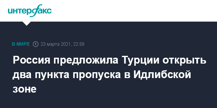 Россия предложила Турции открыть два пункта пропуска в Идлибской зоне