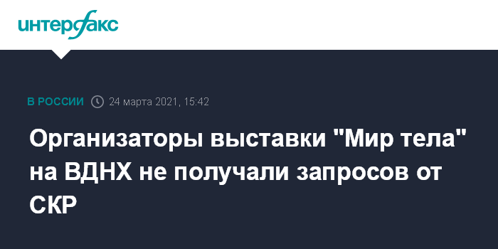 Москва. 24 марта. INTERFAX.RU - Представители Следственного комитета РФ не обращались к организаторам выставки "Мир тела", которая проходит в Москве на ВДНХ, сообщили "Интерфаксу" организаторы выставки.