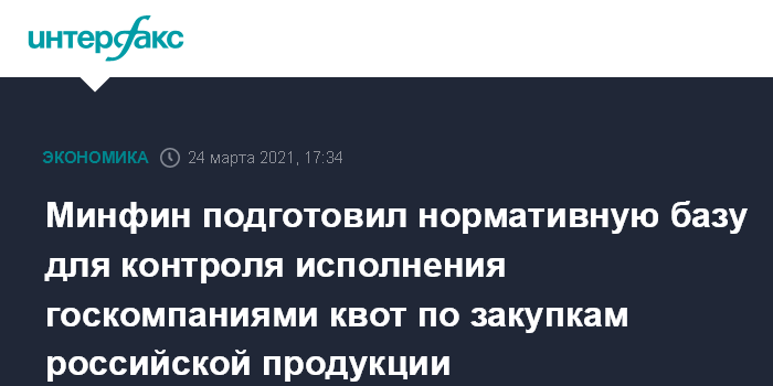 Минфин подготовил нормативную базу для контроля исполнения госкомпаниями квот по закупкам российской продукции