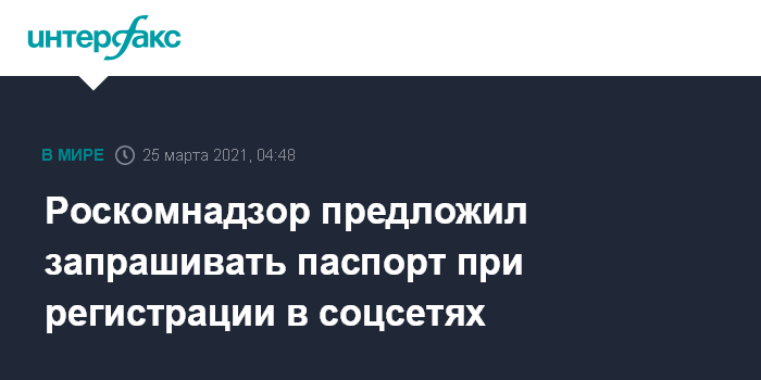 Роскомнадзор предложил запрашивать паспорт при регистрации в соцсетях