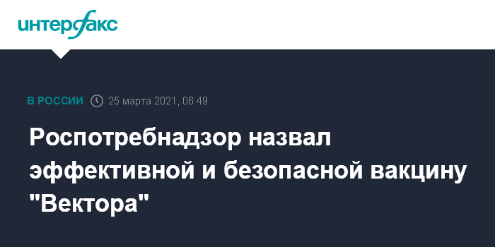 Москва. 25 марта. INTERFAX.RU - Роспотребнадзор сообщает, что результаты проведенного клинического исследования свидетельствуют, что вакцина "ЭпиВакКорона" является иммуногенным и безопасным продуктом для профилактики COVID-19.
