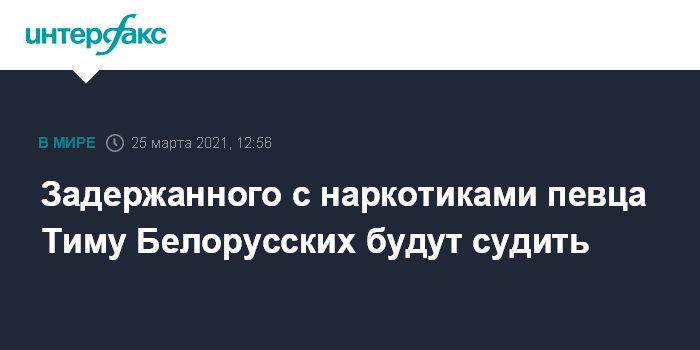 Москва. 25 марта. INTERFAX.RU - Дело об обороте наркотиков и психотропов, по которому проходит 22-летний певец Тима Белорусских (настоящее имя Тимофей Морозов), направили в белорусский суд.