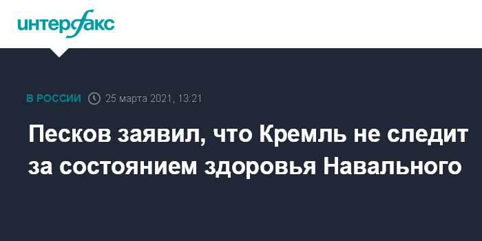 Москва. 25 марта. INTERFAX.RU - В Кремле заявили, что не следят за состоянием здоровья оппозиционера Алексея Навального.